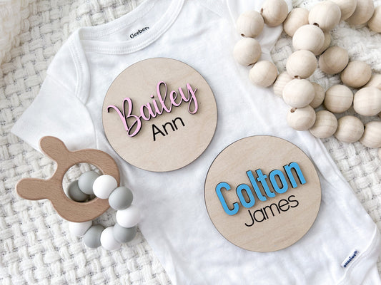 Personalized Baby Name Announcement Sign, 3D Hospital Name Wood Sign, Engraved Baby Name Circle , 3D Baby Name Reveal, Newborn Photo Prop