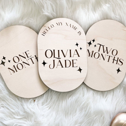 Baby Milestones and Name Plaque - Engraved Retro Oval