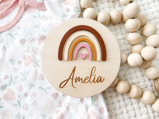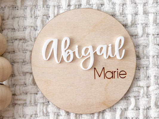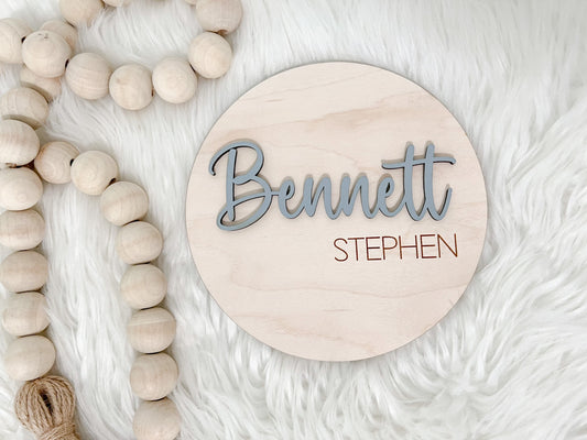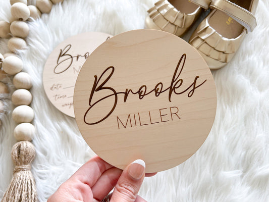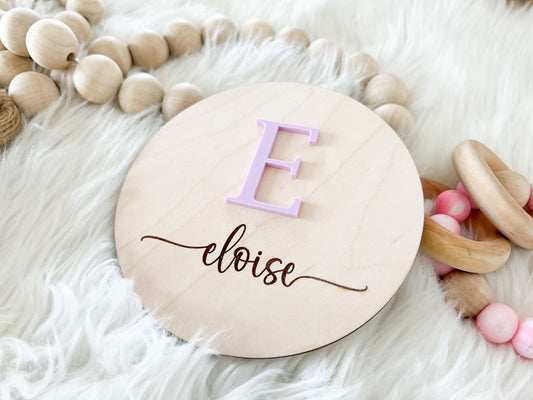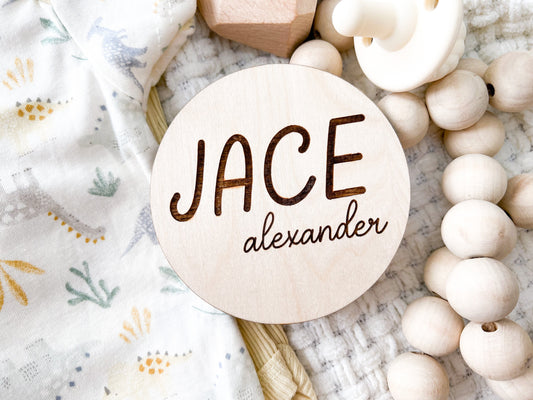 Wooden name Sign, Birth Announcement Hospital Sign, Personalized Baby Name Circle, Newborn Photo Prop, Baby Name Engraved Wood Sign