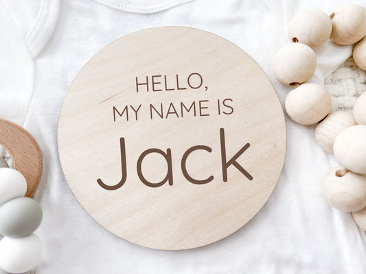 Personalized Wood Baby name Sign, Hello My Name Is Birth Announcement Sign, Hospital Photo Prop, Baby Name Announcement, Engraved Wood Sign