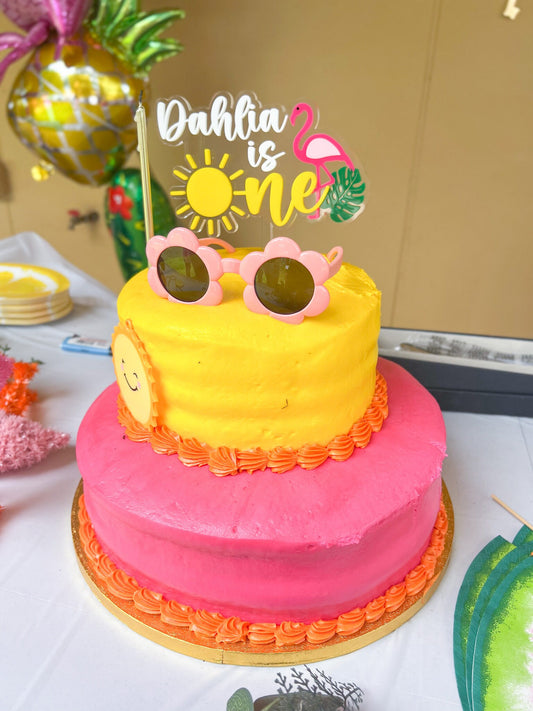 Personalized First Birthday Cake Topper, One in the Sun, Tropical First Birthday Cake Topper, Flamingo Cake Topper, One year birthday cake