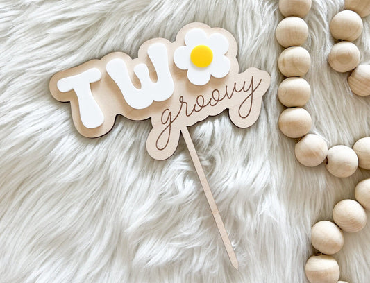 Two Groovy Cake Topper, Retro Hippie Cake Topper, Second Birthday 70s Theme Cake Topper, Hippie Party Decor, Daisy Cake Topper
