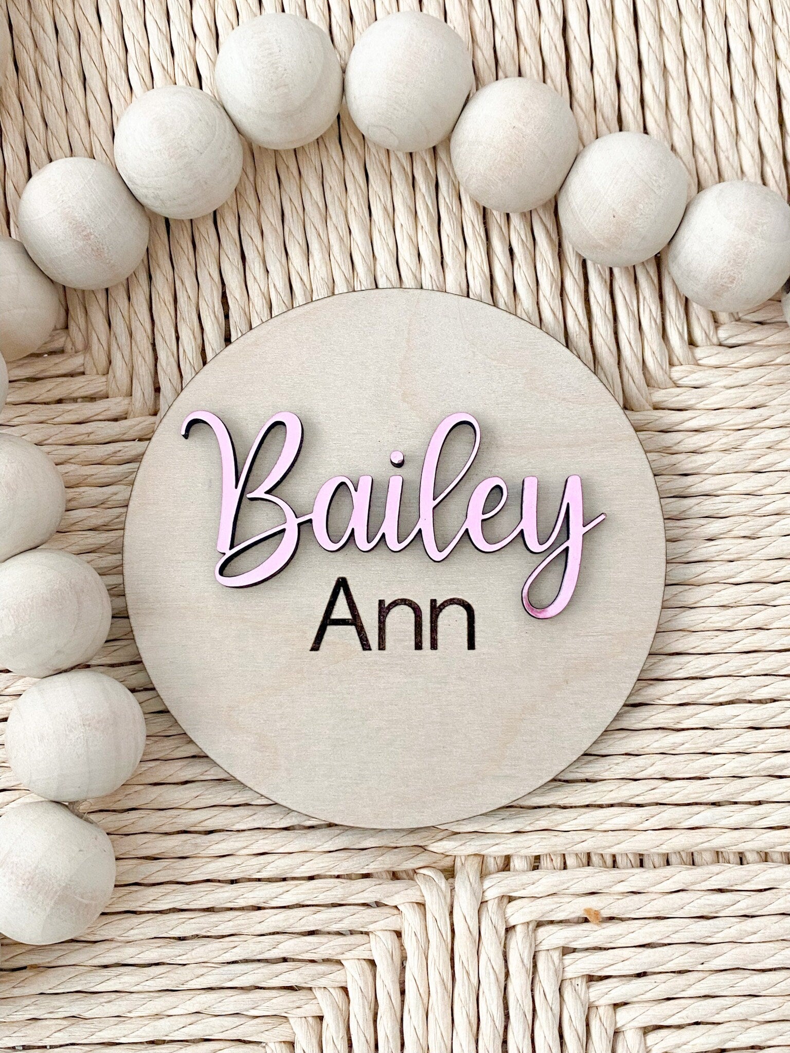 This sign has a 3D first name and engraved middle name. Perfect for birth announcement and photo prop
